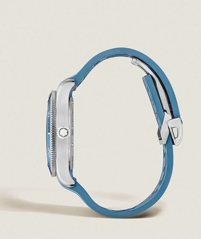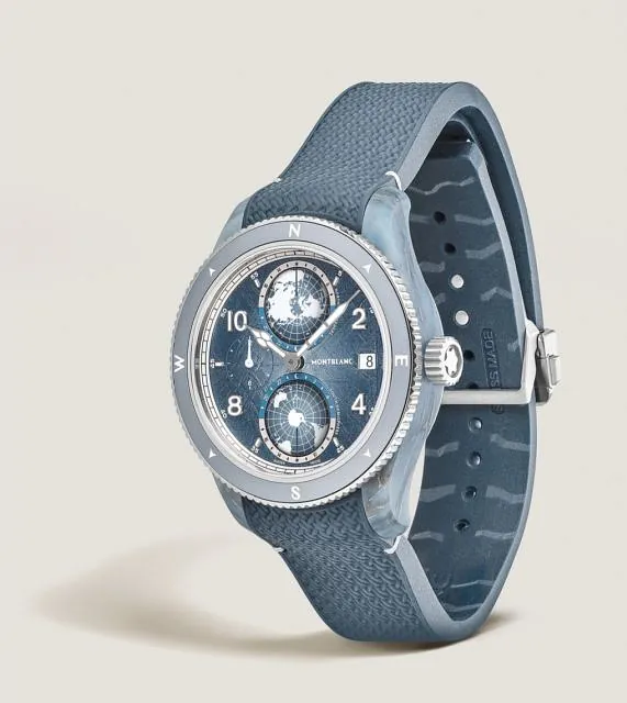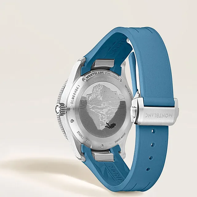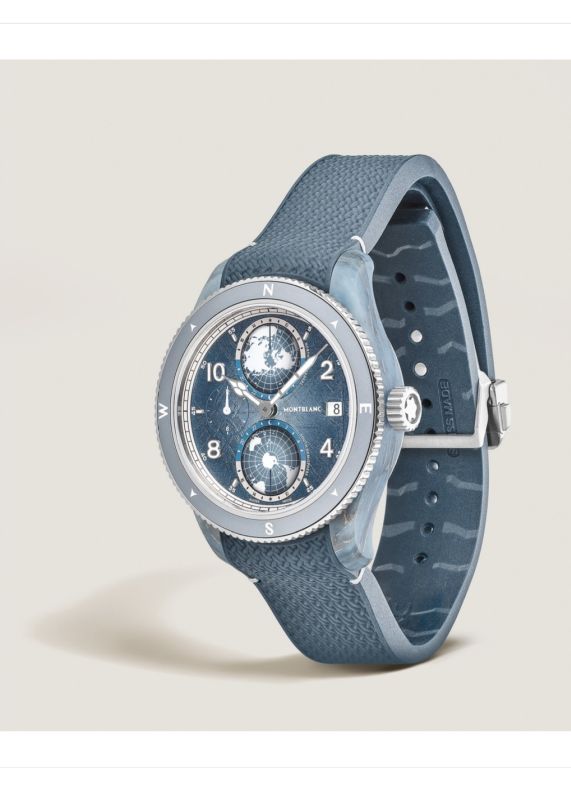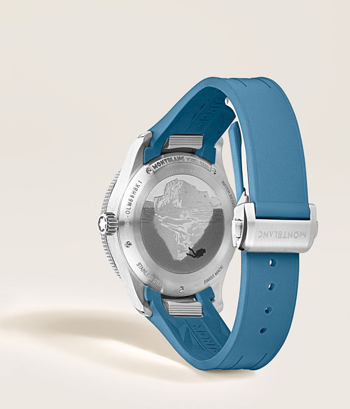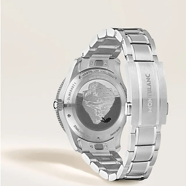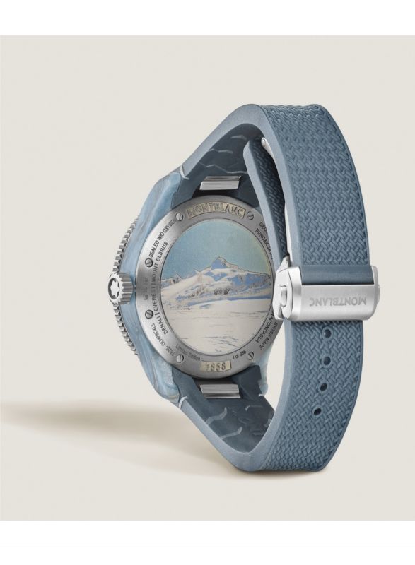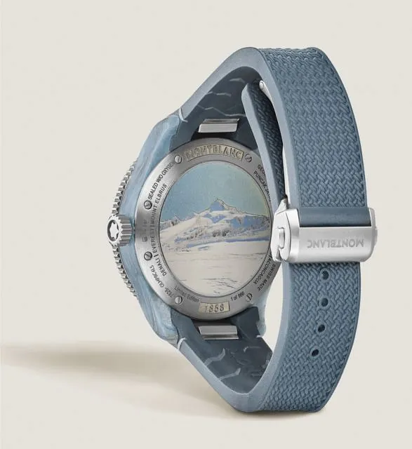 Diese erste Ausgabe bezieht sich auf den siebten Gipfel – den Mount Vinson, den Messner 1986 bestieg. Sie wird mit einem 43,5-mm-Titangehäuse angeboten, das direkt von der Landschaft des Mount Vinson inspiriert ist, mit einem Mittelgehäuse aus einem Kompositenmaterial, das aus Quarzfasern, aluminisierten Basaltfasern, CaCO₃ und hellblauem Resin gefertigt ist. Das Gehäuse, das ganz ohne Sauerstoff auskommt, ist mit einer eingravierten, leuchtend grauen Umrandung des Mount Vinson auf der Seite versehen, während eine farbige 3D-Lasergravur dieses majestätischen Gipfels den Gehäuseboden aus Titan ziert. Angetrieben wird die Uhr vom MB 29.25 Automatikwerk mit der Montblanc Weltzeitkomplikation, zu der die drehbaren nördlichen und südlichen Halbkugeln, eine 24-Stundenskala, Tag-/Nachtanzeigen, eine zweite Zeitzone und eine Datumsanzeige gehören. Abgerundet wird die Uhr durch ein austauschbares blau-grünes Kautschukarmband mit einer Verjüngung und einem Feineinstellsystem