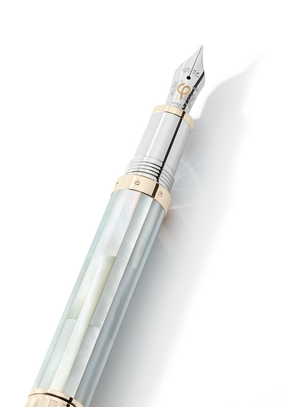 Die handgefertigten Federn bestehen aus massivem 18-Karätigem Gold, was eine außergewöhnlich sanfte, fließende Schreibleistung ermöglicht. Die Schreibgeräte enthalten zusätzlich eine Silber-Zeichenspitze am Konus, mit der der Nutzer eigene Skizzen anfertigen kann – ein kreatives Instrument, das Renoirs Liebe zur Skizze und zur spontanen Komposition widerspiegelt.