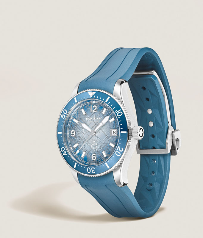 Inspiriert vom Mer de Glace wurde das Ziffernblatt mithilfe einer nahezu in Vergessenheit geratenen Technik kreiert, dem „gratté-boisé“. Die 38 mm Zero Oxygen Taucheruhr verfügt über eine einseitig drehbare Lünette mit zweifarbigem Einsatz aus blauem eloxiertem Aluminium, eine 3D-Gravur auf dem Gehäuseboden. Das Modell ist sowie mit Metallband als auch mit einem blauem Kautschukarmband mit Feineinstellung und Schnellwechselsystem verfügbar. Zudem erfüllt es die Anforderungen der ISO 6425 Norm für SCUBA und ist wasserdicht bis 300 Meter, und ist sogar fürs Gletschertauchen geeignet.